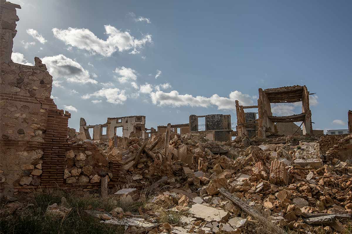 El Pueblo Viejo de Belchite está situado a 40 kilómetros al sur de Zaragoza, en la región de Aragón; las ruinas del Pueblo Viejo -congeladas en el tiempo durante más de 80 años- son un frágil recuerdo de un difícil episodio de la historia de España.